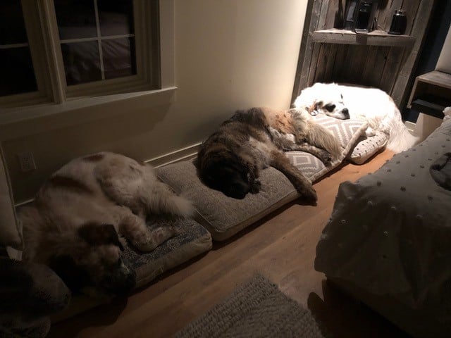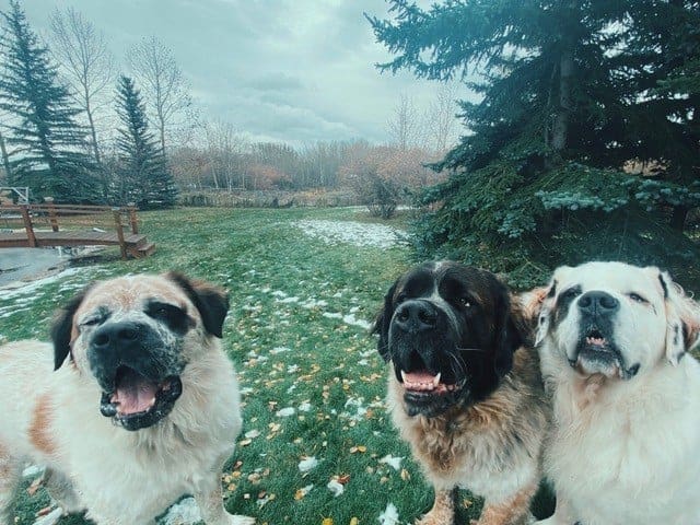 Now, their family includes four dogs — the three Saint Bernards and one other lucky pup — all sharing a beautiful one-acre fenced yard where they can run and play to their hearts’ content.