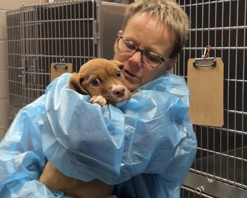 Lochmann wrapped the trembling puppy in a blanket and rushed him to the rescue’s clinic. The warmth of the car must have felt like a miracle after hours alone in the cold.