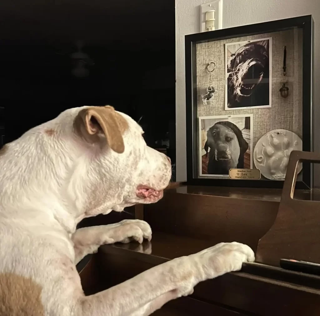 He gathered a paw print, a bit of fur, and a few favorite photographs, placing them in a delicate shadowbox beside the piano in the living room. Inside were pieces of Lex’s life, tangible fragments of the love that had filled their home.