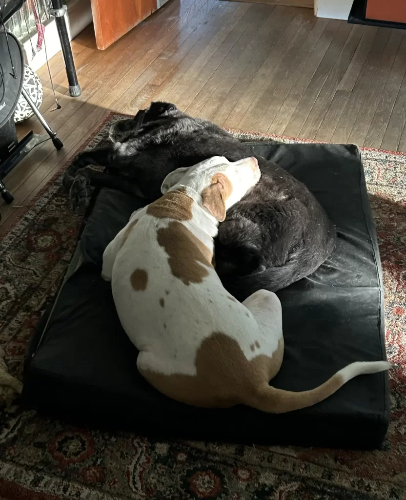 As the months passed, Vaughn began to mirror Lex’s calm. He would rest beside him during long naps, sometimes pressing his body close as if learning from the elder dog’s peacefulness.