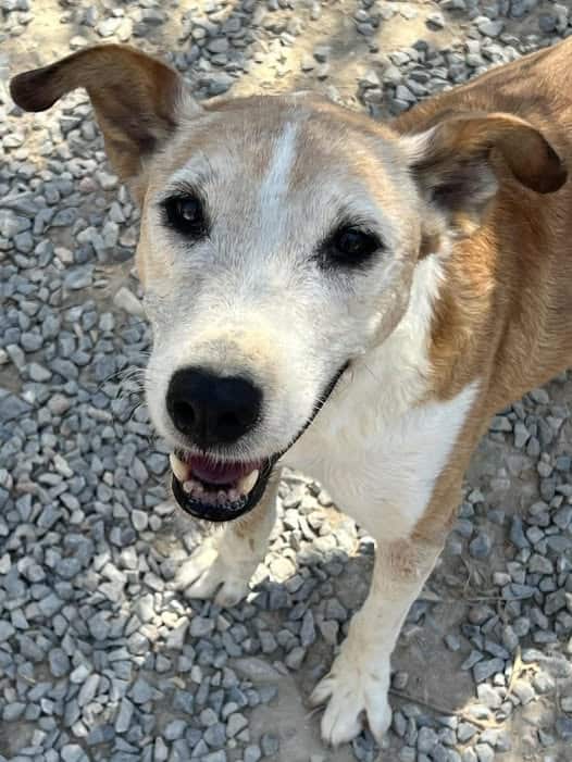 She still wagged when volunteers passed.