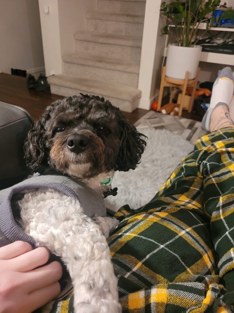 It was a curly black-and-white dog, small and silent, planted on their porch as if she belonged there.