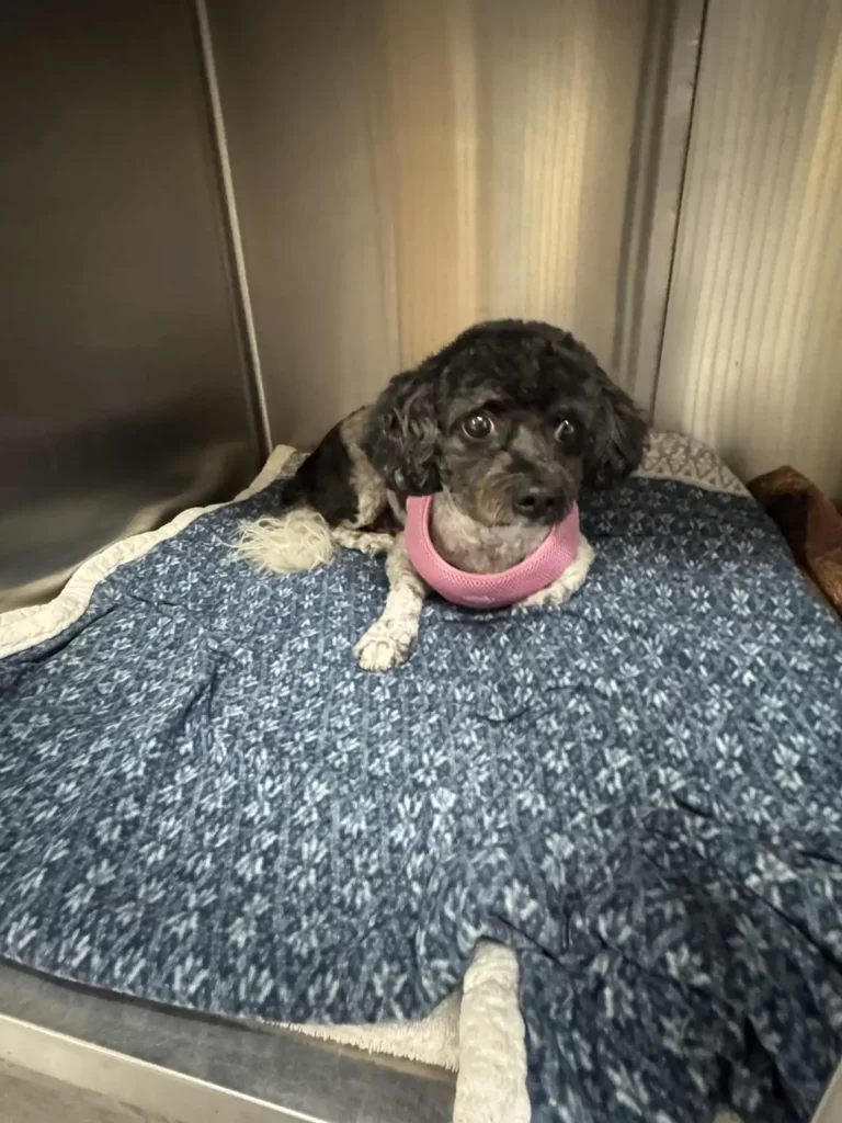 The staff gave her a cozy kennel lined with blankets, and Maya curled into the corner with a deep, tired sigh.