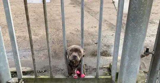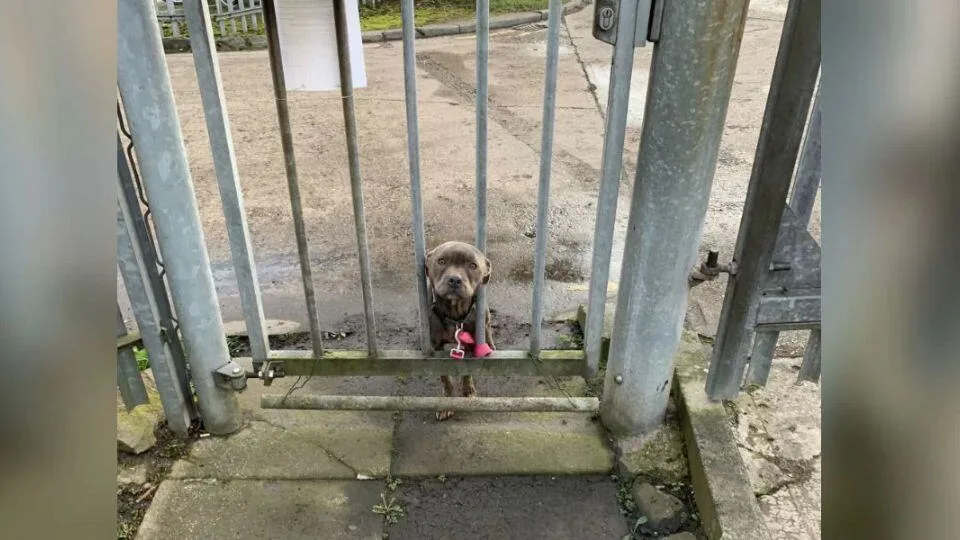Instead, their hearts sank at the sight before them. A thin, trembling dog had been tethered tightly to the front gate, waiting in silence.