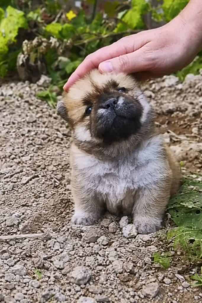 A gentle hand stroking his fluffy head.