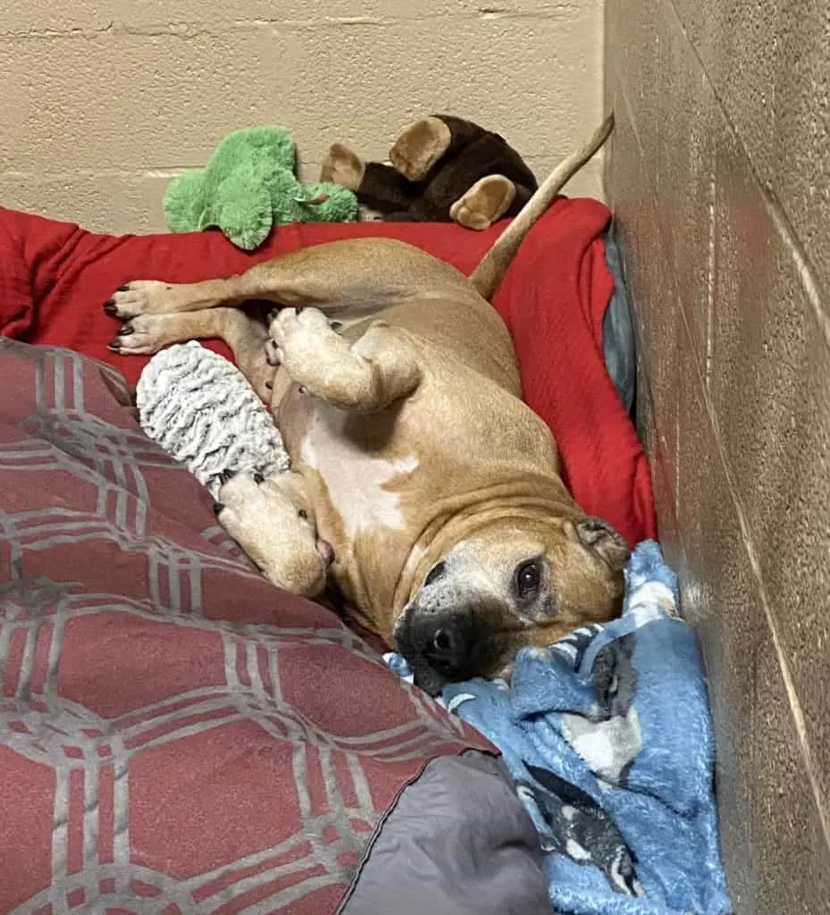 For now, Cupid rests in his kennel, surrounded by warmth and soft blankets.