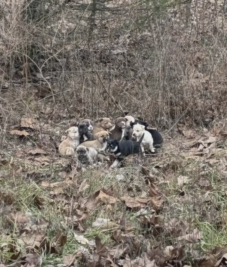 Mail Carrier Stops Her Route After Spotting 16 Skinny Puppies Shivering In The Woods