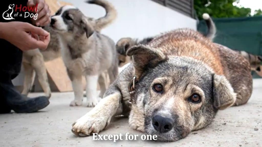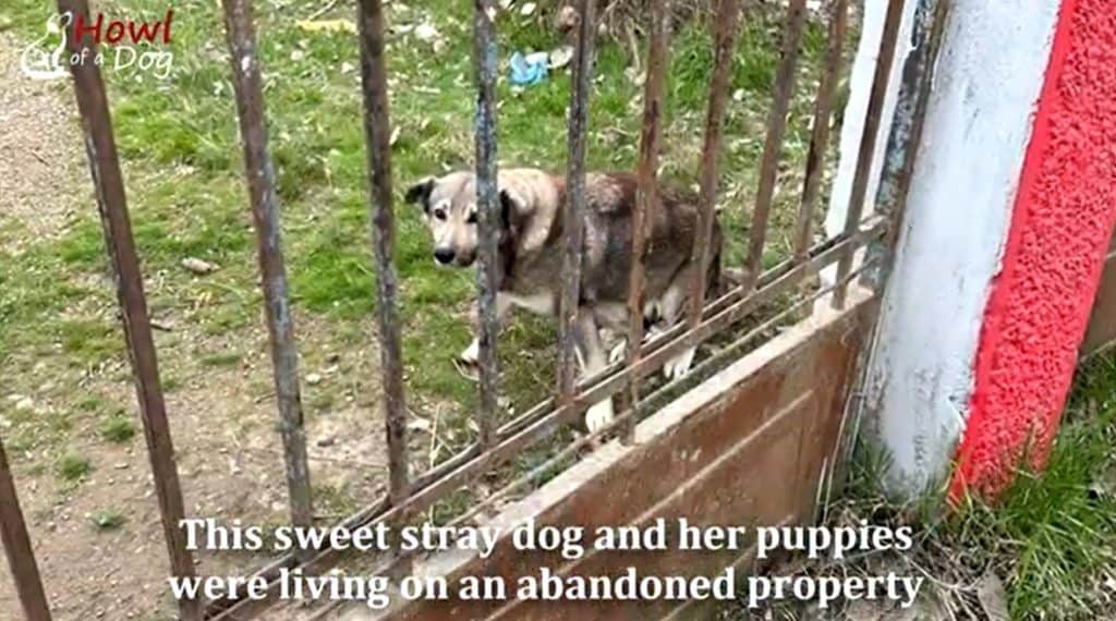 Her ribs pressed through her skin, but her eyes stayed fixed on her puppies.