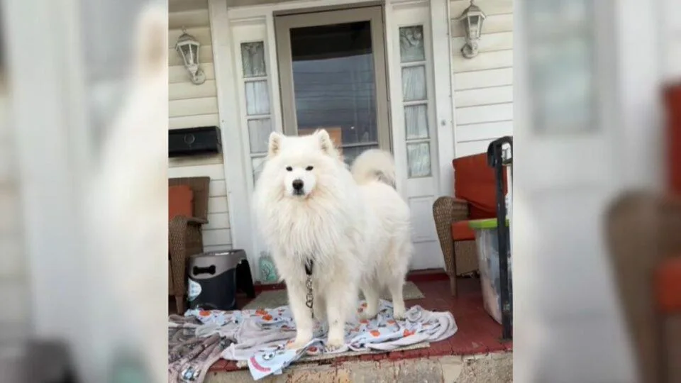 Nuko is a Samoyed, a breed known for its thick, white coat and natural ability to handle frigid temperatures. These dogs have a long history of living in snowy environments. They were originally bred to herd reindeer and pull sleds in Arctic regions.