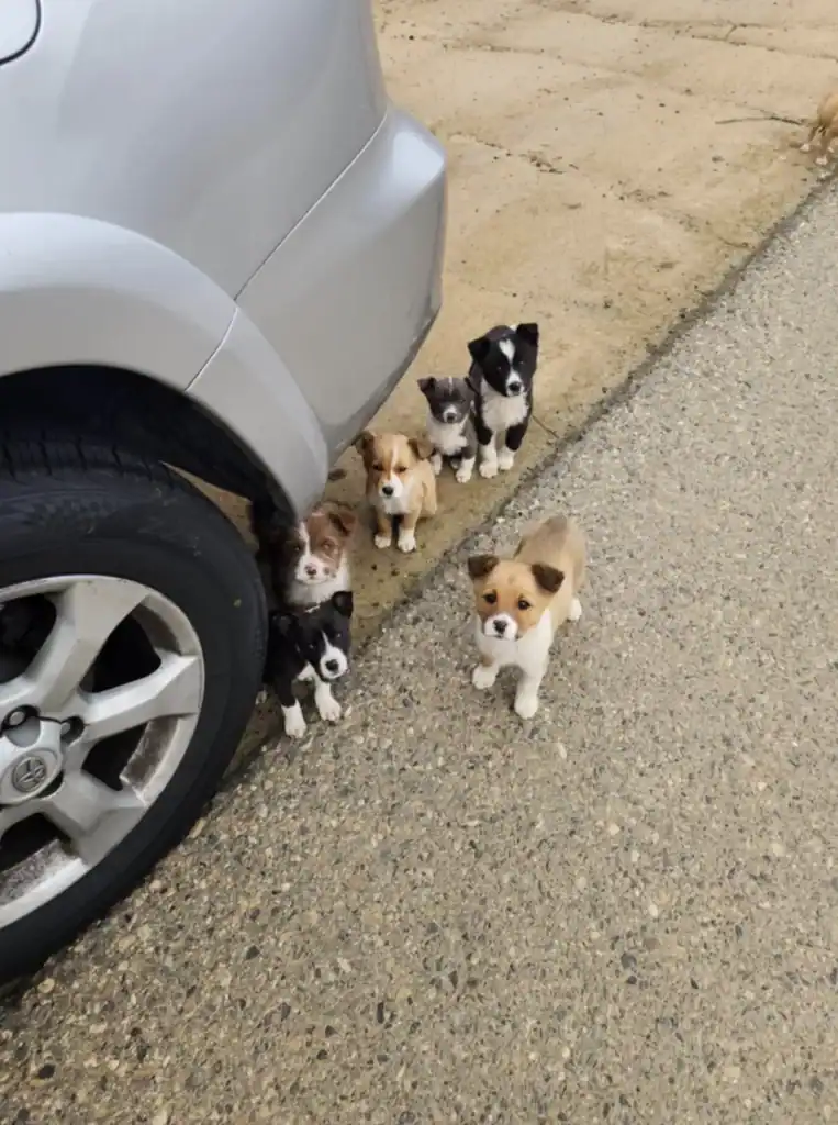 But with a scared mama and seven fragile puppies, he knew he didn’t have the means to help them all. Still desperate to do the right thing, he snapped the location on his phone, left food and water beside them, and reached out to a rescuer he hoped would answer.