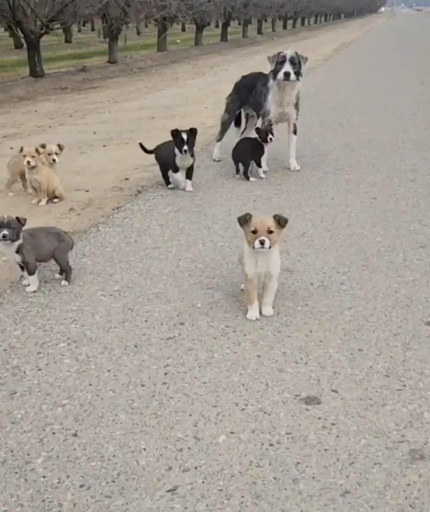 Sitting in the shade of a dusty service road was a thin, frightened mother dog curled around a pile of tiny bodies. At first, he wasn’t sure what he was looking at.