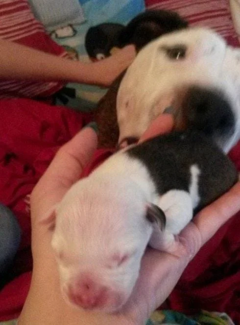 Penny lay down and gave a small whine, and soon a tiny puppy slid into the world.