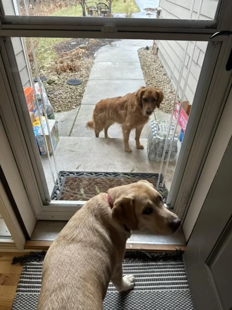She bounced between questions and glances, watching the Lab happily explore and interact with other dogs. It was then a regular customer approached her, concern etched on her face.