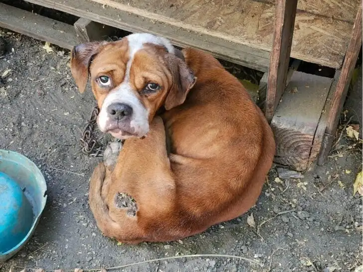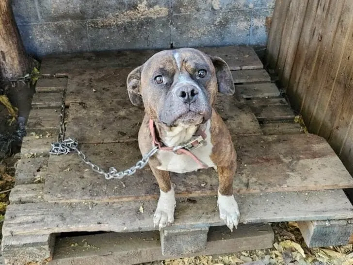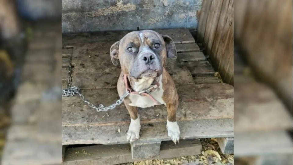 Beneath the rusted sheet metal and broken wood were three dogs: Bam, Beau, and Brenda. Each was tethered by thick chains to makeshift shelters, barely big enough for them to turn around.