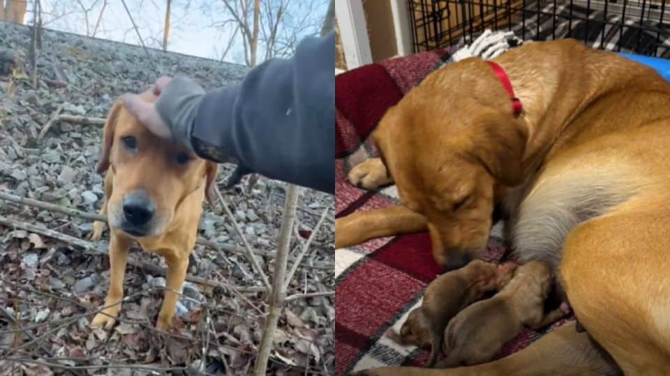 She was huge with puppies, moving slow, belly heavy, eyes scared, and the wind cutting through her thin fur.