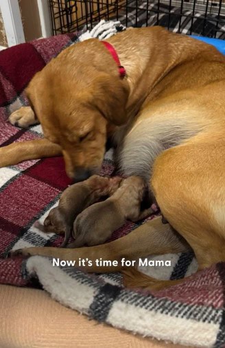 The woman watched Mama’s belly tighten and relax, feeling the puppies shift.