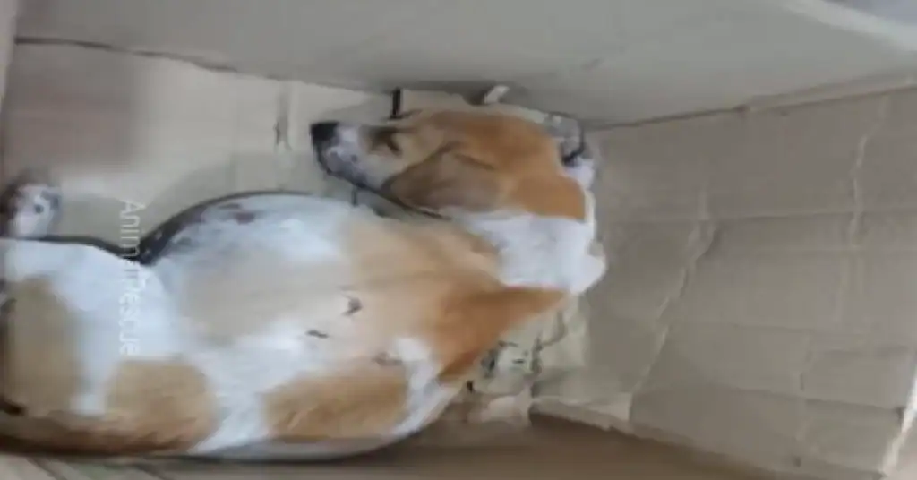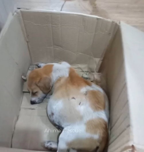 Somehow she ended up in a box.