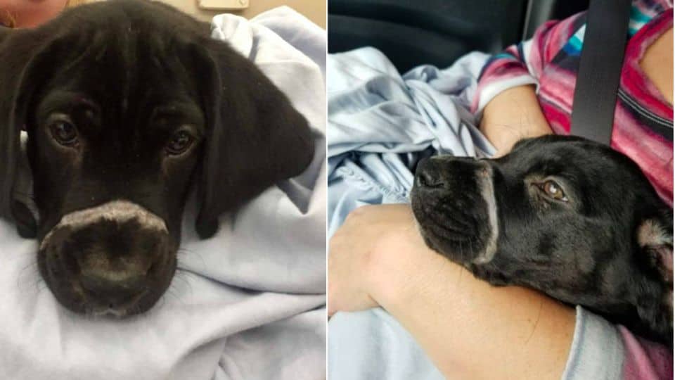Dr. Bryant Phillips examined the dog and quickly realized how close he had come to death. The pup was weak, malnourished, and badly dehydrated. His stomach carried signs of parasites, and his jaw was tender and swollen.