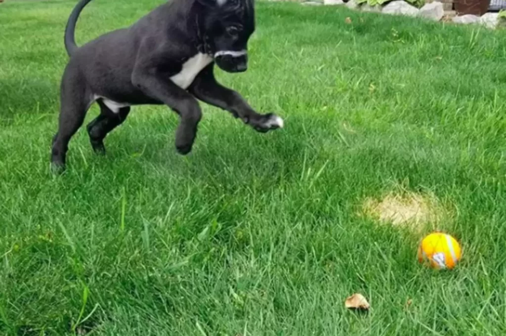 Norman loved chasing squeaky toys, tripping over his long legs, and sprawling belly-up in the sun.