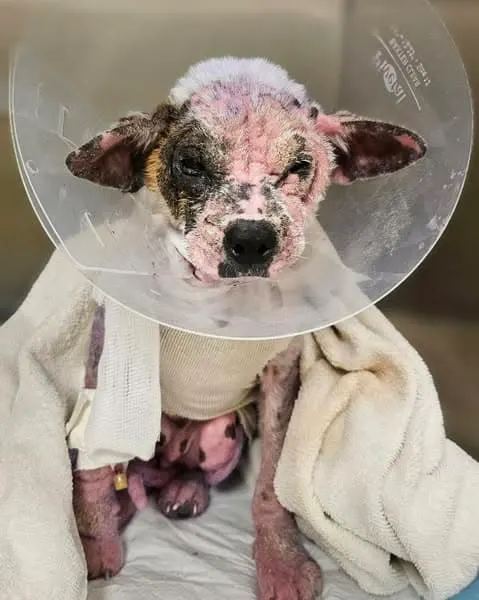 Whoever had cared for her before had likely used it as a desperate attempt to treat mange, but without proper veterinary care, her condition had only worsened.