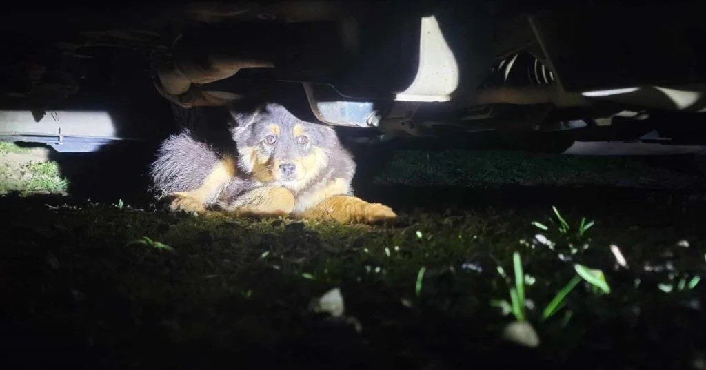 But the fear was too strong. Before Kaitlyn could reach her, the dog shot out from beneath the car like a blur, vanishing into the night.
