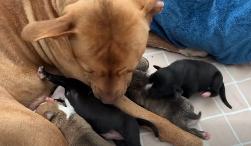 It was Jackie Frost, curled around her newborn puppies, doing everything she could to keep them safe.
