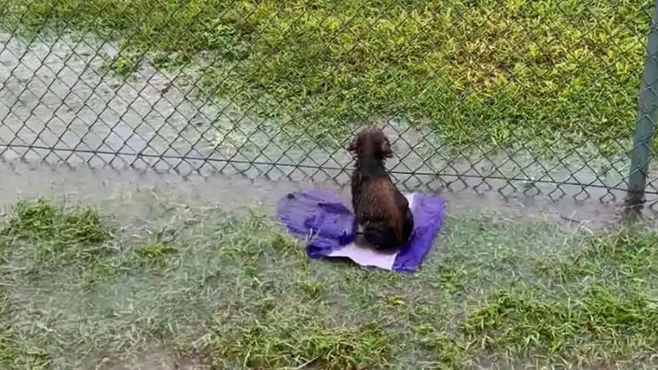 The call came on a stormy afternoon — a small puppy had been spotted alone on a flooded baseball field in South Texas.