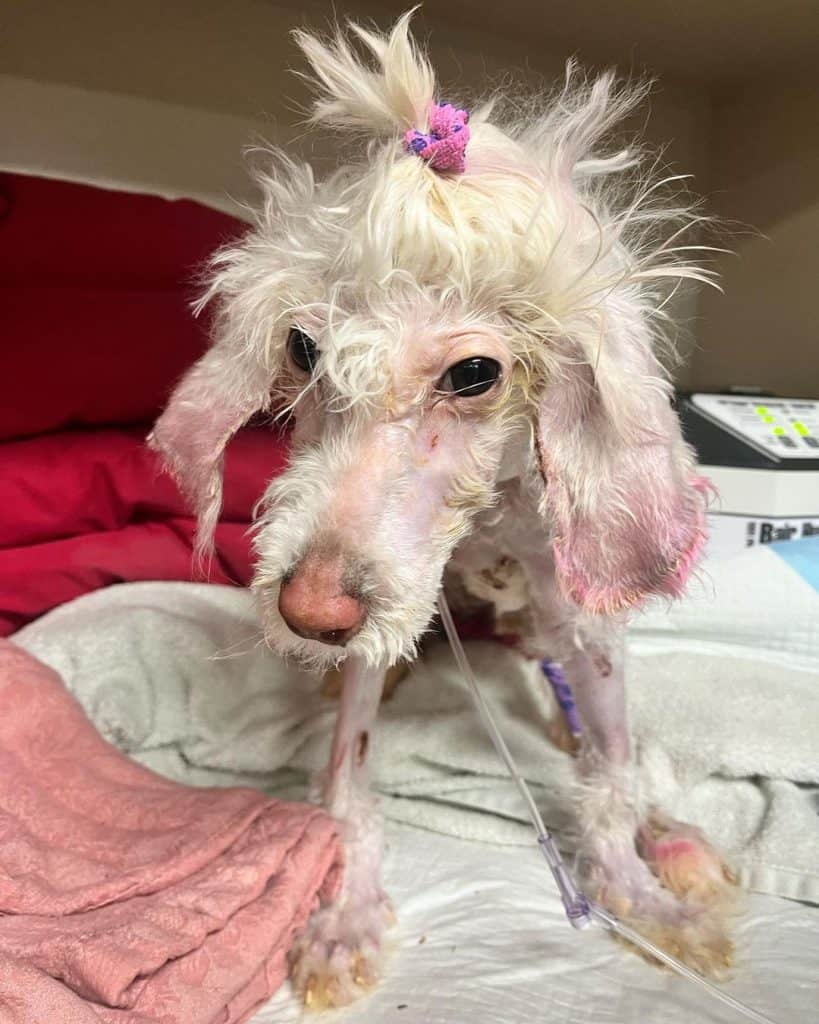 Her fur, once soft, now stung wherever the strange liquid touched.