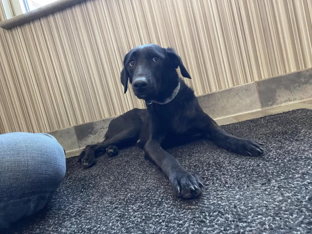The trembling pup took a hesitant step closer, her eyes locked on Feidler’s calm presence.