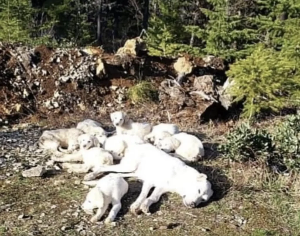 There, tied to a tree, lay a mother dog surrounded by eight tiny, trembling puppies.
