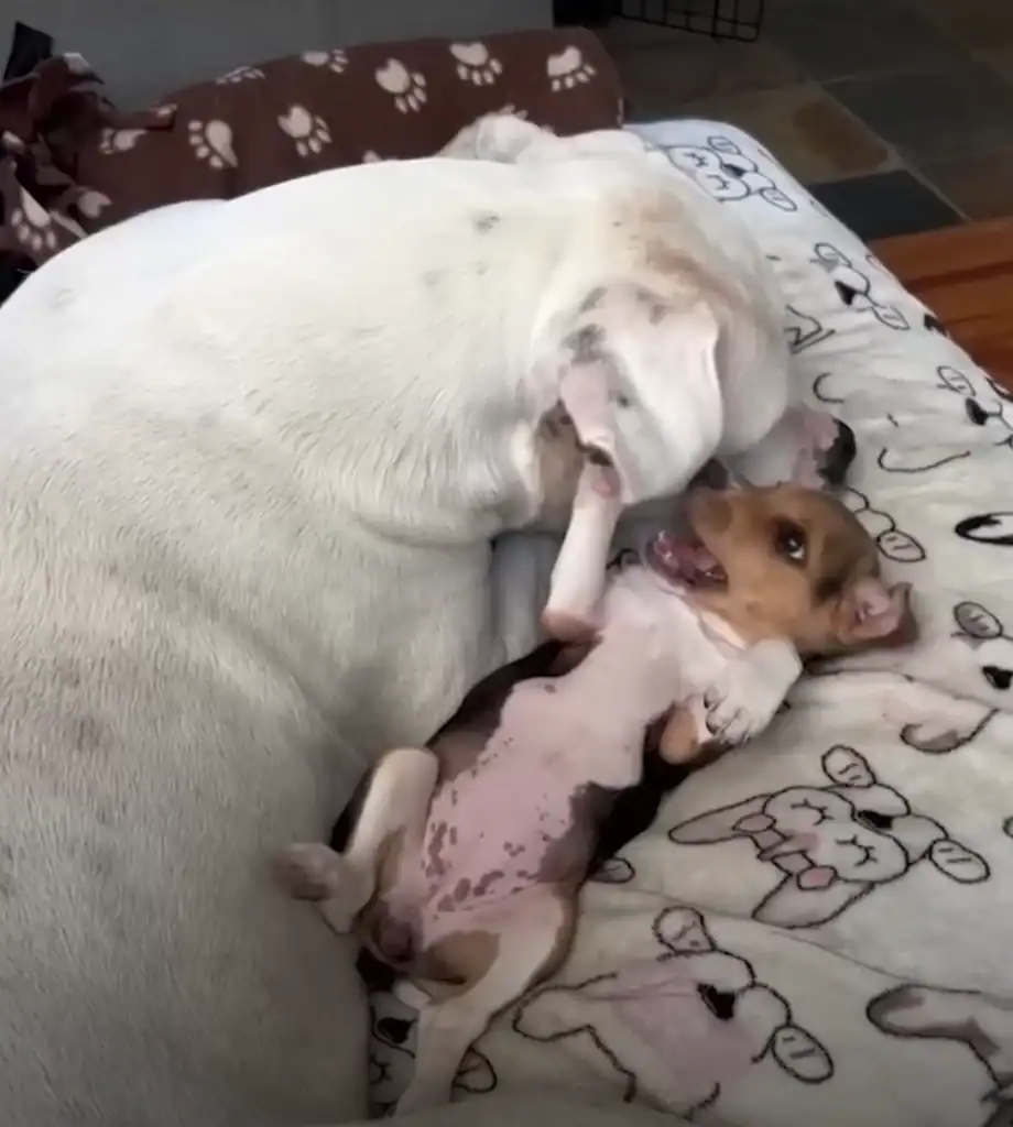 She watched Jasmyne clean the pups.
