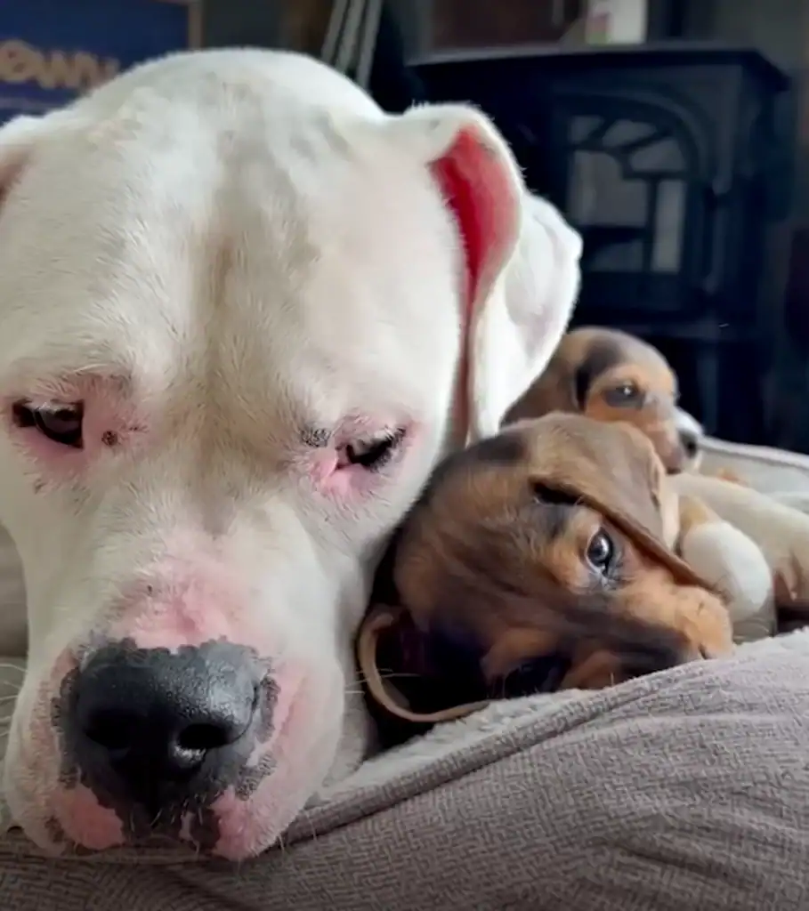 One afternoon, Butter laid down beside her puppies.