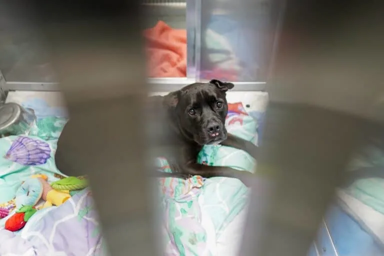 The staff tried to calm her, but Mishi pressed her face against the kennel bars, watching the entrance. Her world had narrowed to a tiny room, and the man she loved was no longer there.