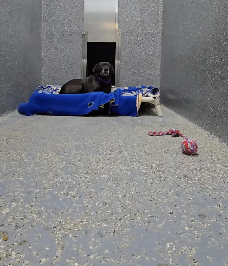 But just a few months later, the front doors opened again, and there she was — the same leash, the same soft eyes now dulled with confusion.