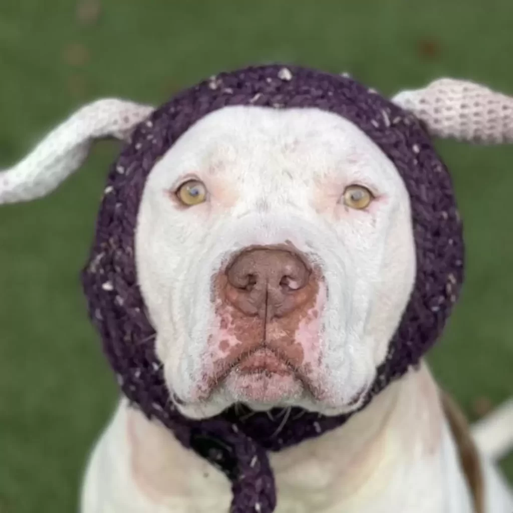The photos spread quickly, and before long, people everywhere were talking about the earless pit bull with his handmade hat.