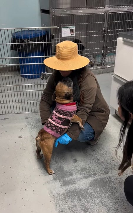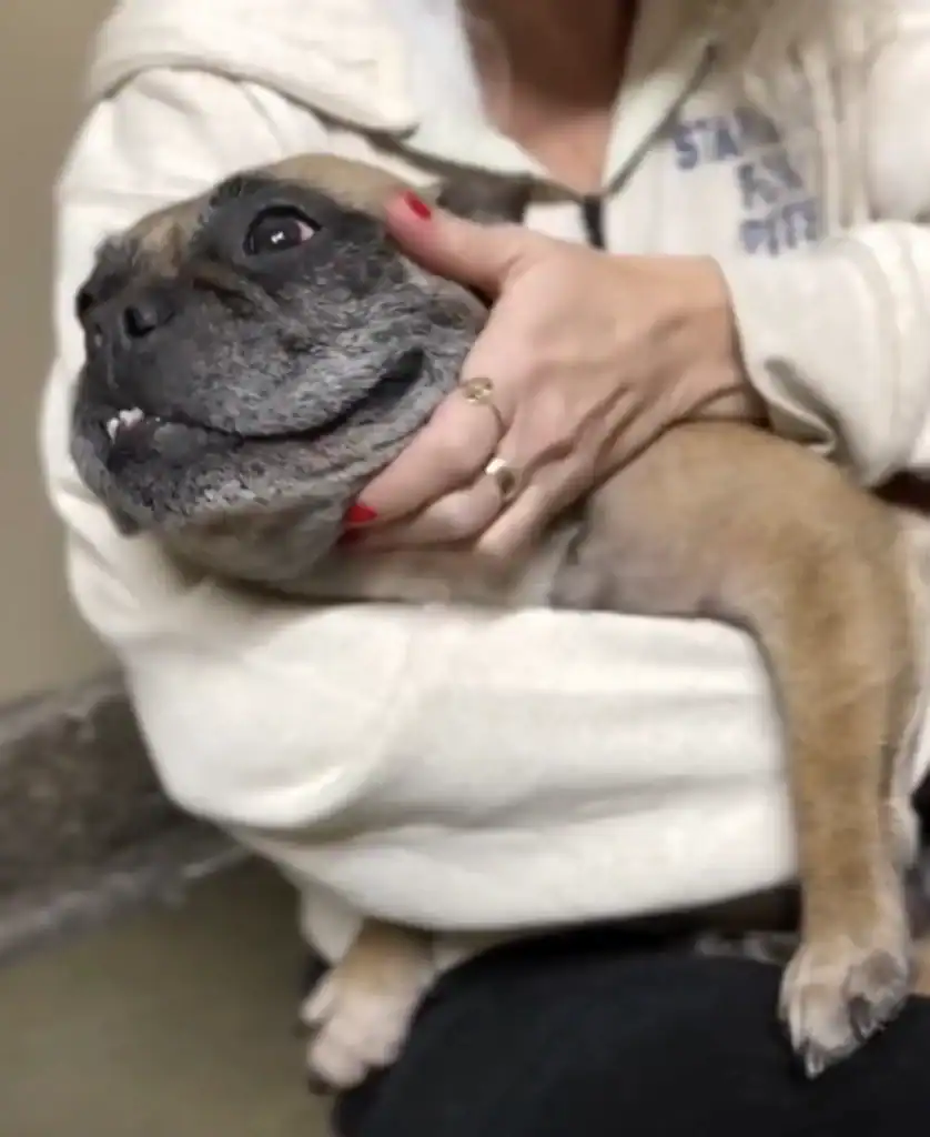 The rescuers walked into Gladys’ space, and the moment she saw them, her eyes softened like she recognized kindness.