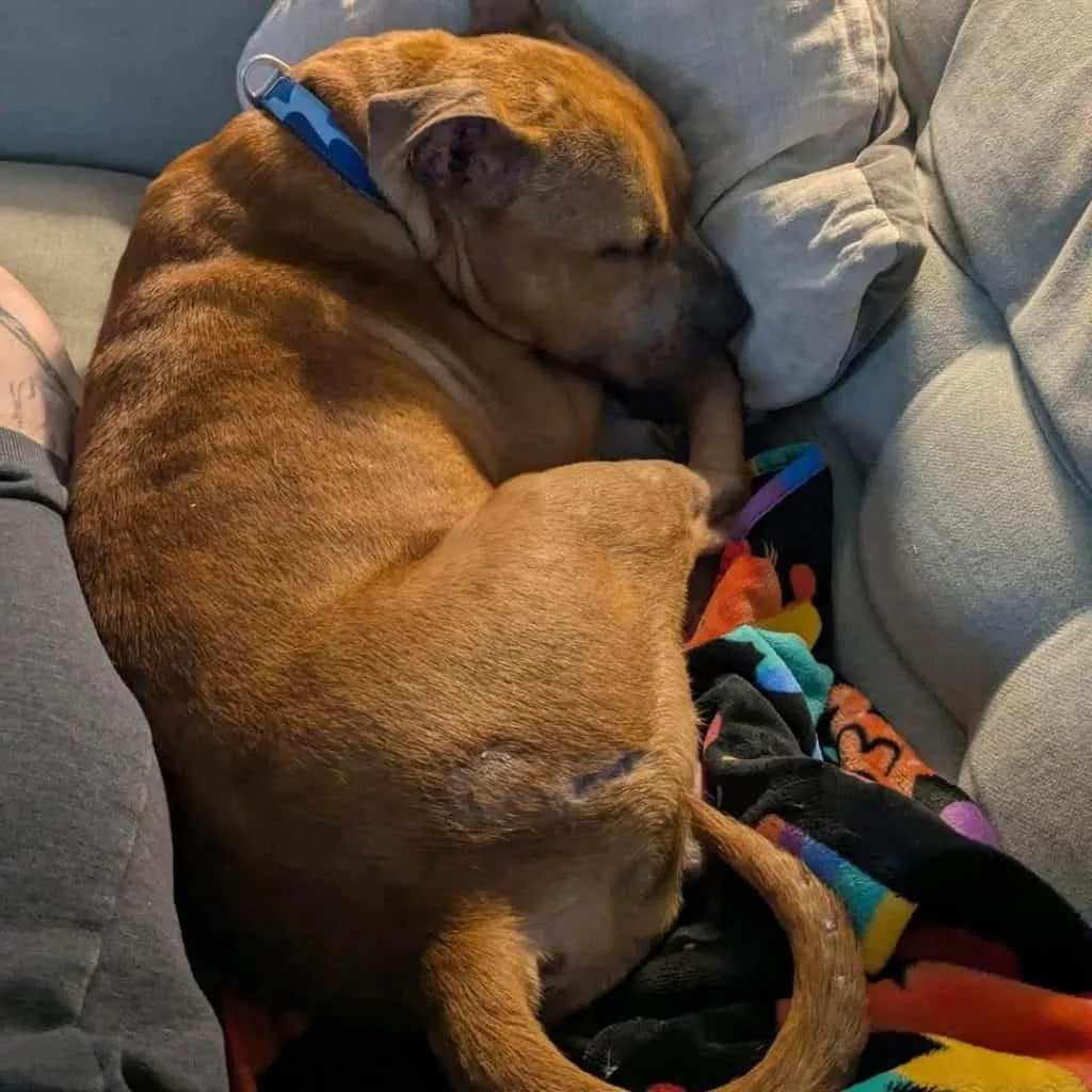 His square brown muzzle and chocolate eyes looked like a pit bull’s.