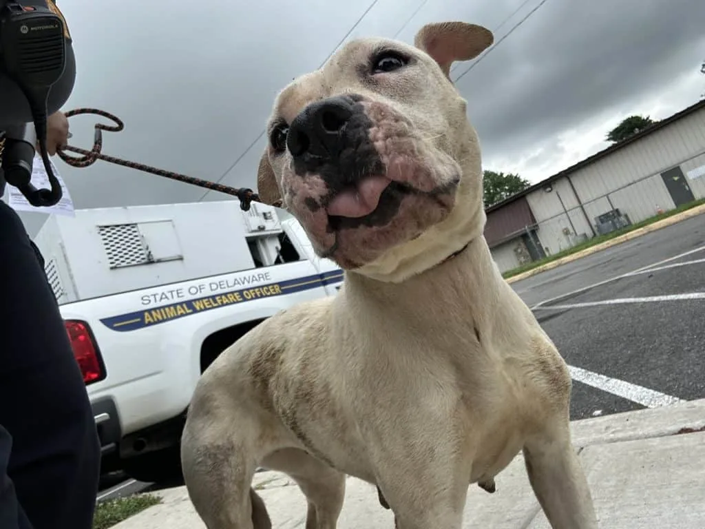 This dog had survived something that should have broken him completely.