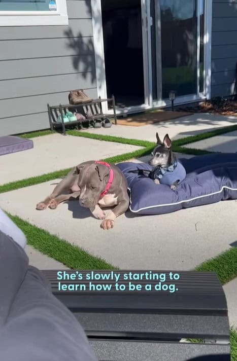 Now Tory is learning how to be a dog.