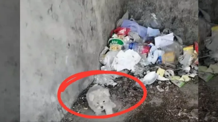 A group of people was clearing out an old, run-down house when one person noticed something unusual. A kind soul spotted a small dog rummaging around, clearly looking for food.