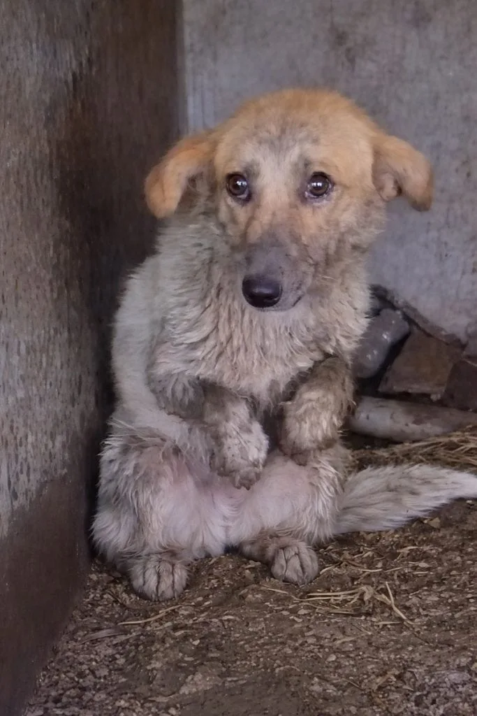 The pup flinched.