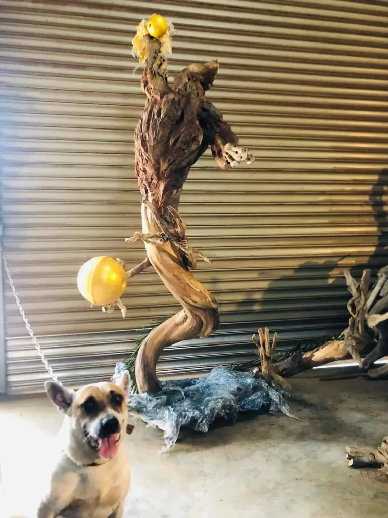 Renchuan knew Hachiko’s years were catching up to him, and before his passing, he had started building something special — a life-sized sculpture of his beloved dog, made entirely of driftwood they had gathered side by side.