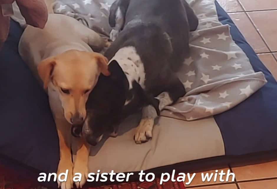 His new canine sister welcomed him with gentle sniffs and happy tail wags.