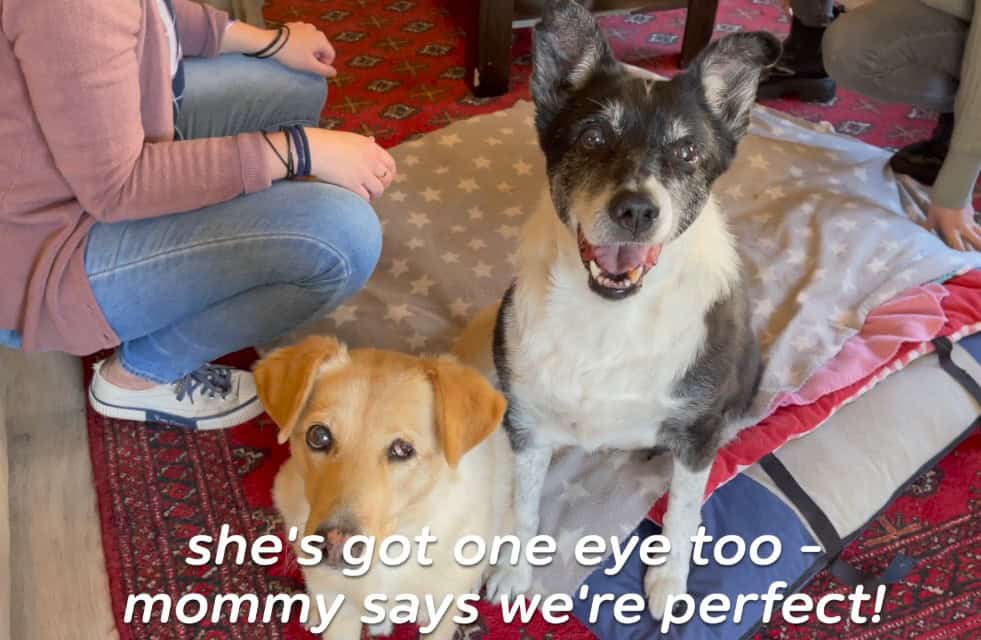 The woman had a dog at home who also had one good eye.