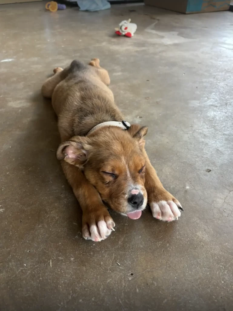 Honey, the only girl, became the calm protector of the group. She would watch her brothers and wag her tail whenever someone new came near.