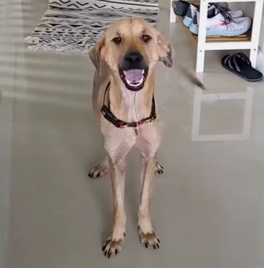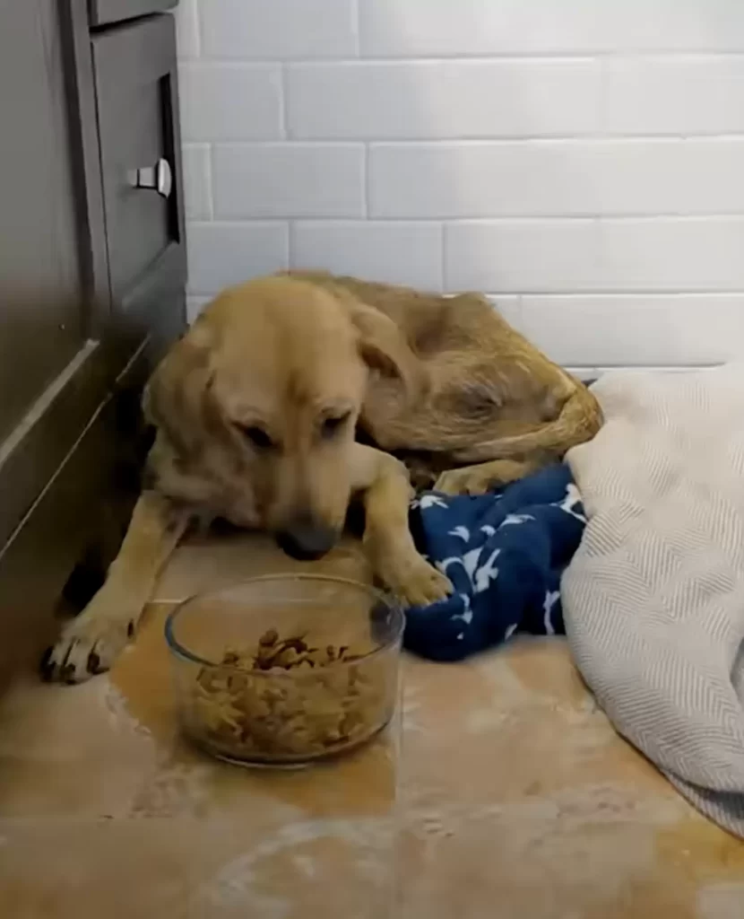 The moment the bucket was removed, the dog didn’t instantly relax.