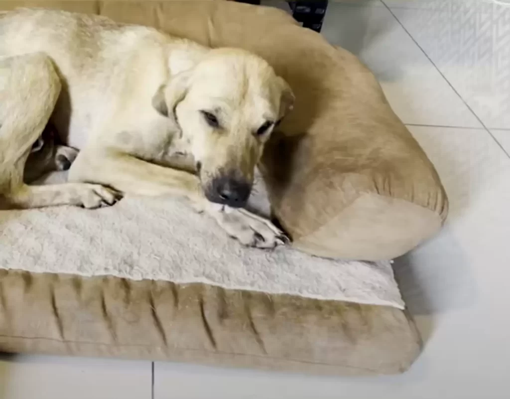 Over time, small breakthroughs began to appear. Winnie discovered the comfort of soft bedding, tentatively explored couches, and started observing the world outside her safe corner. More importantly, she began watching the other dogs in her foster home.
