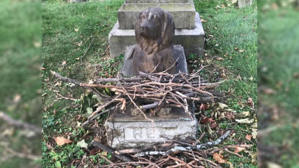 Though the cemetery’s archives include a brief 19th-century mention of a “bronze likeness of a dog,” no one can say for sure whether Rex himself lies buried beside Stow.