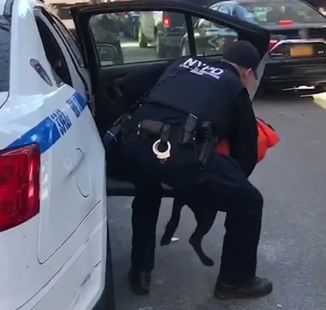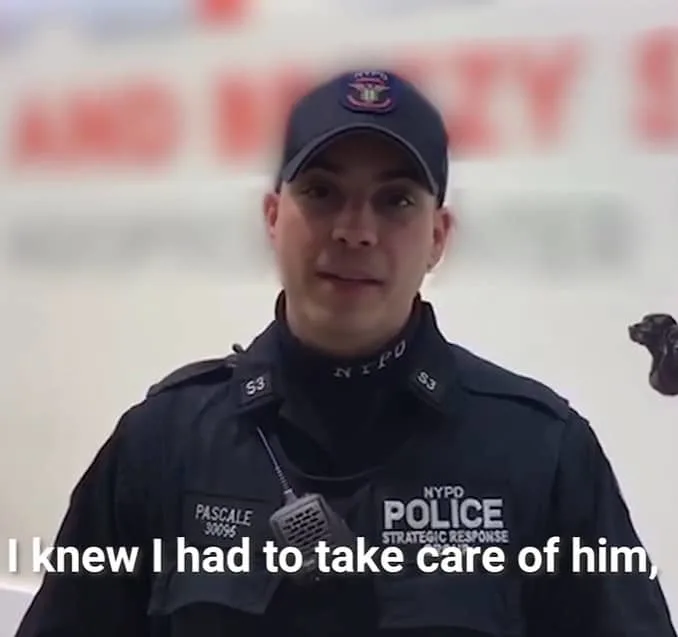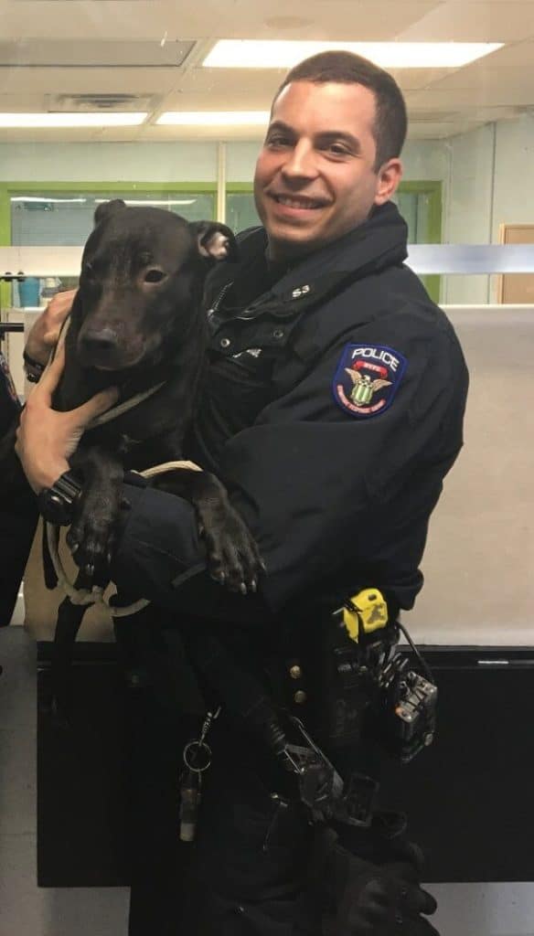 Officer Pascale wrapped the puppy in his jacket and carried him to the patrol car.
