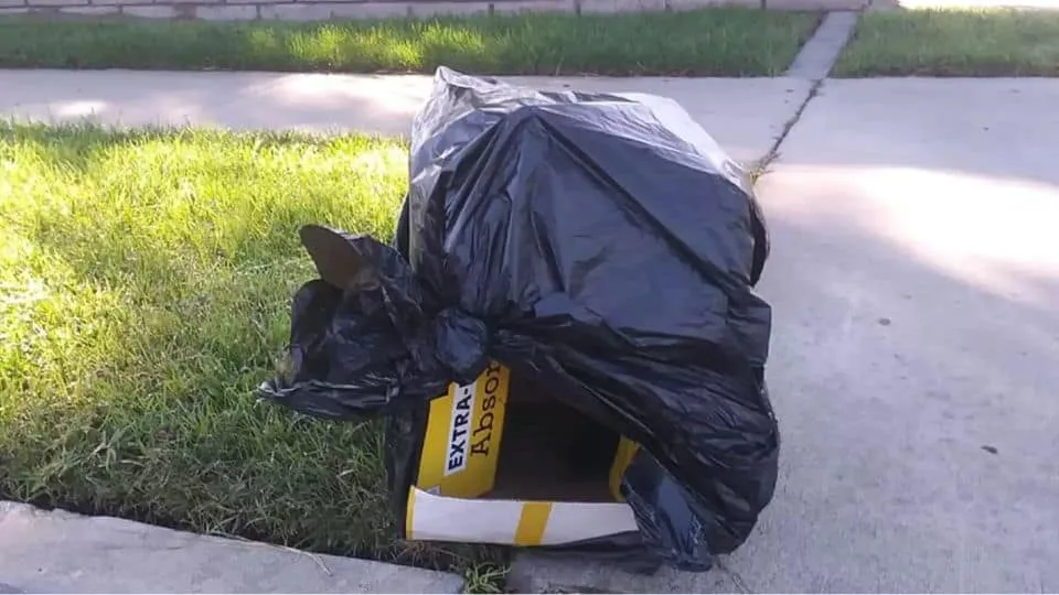 Gloria and Guillermo Reyes were walking near their home when something unusual caught their eyes — a cardboard box wrapped tightly in black plastic, sitting alone at the curb.